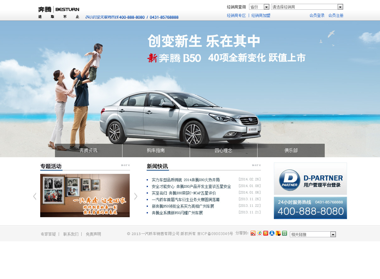 “奔腾”是一汽集团50年造车历史的积淀、15年开放合作经验的成果。它吸收当今先进的造型理念、车身设计、主被动安全技术、内饰模块开发、NVH改善等先进技术,是集成创新的结晶,是高起点、高品质、高性能的国内品牌代表。它不但承载着国人的关注与骄傲,也实现了中国汽车工业技术与品质的大幅度跨越。